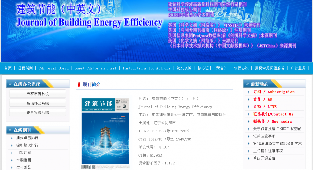 《建筑节能(中英文)》是一本由中国建筑东北设计研究院有限公司主管,中国建筑东北设计研究院有限公司、中国建筑节能协会主办的国家级建筑节能专业技术期刊。该刊重视学术导向,坚持科学性、学术性、先进性、创新性,力促国内外建筑节能先进技术、产品和设计理念交流、互通有无。
