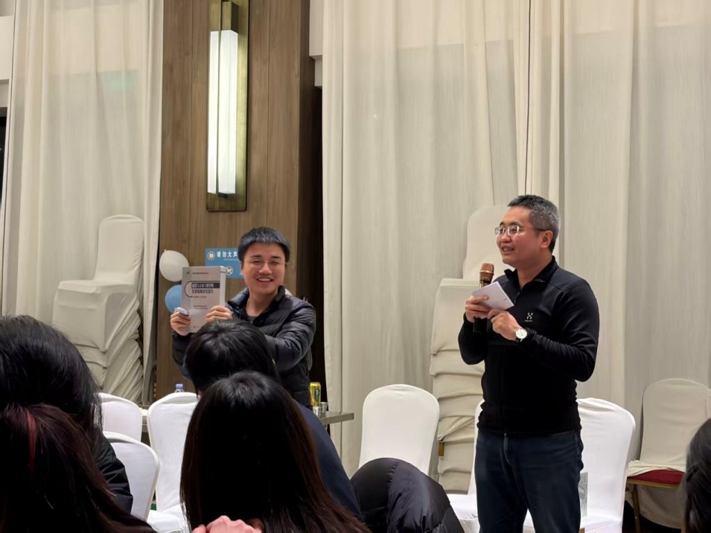 晚上,绿建中心全员欢聚一堂,吃着美食唱着歌,尽情游戏。大家诉说着一年来的感恩与收获,期待着来年的进步与发展。冯驰老师为中心每一位成员准备了丰厚的礼品,现场气氛在抽奖环节中更加热烈。